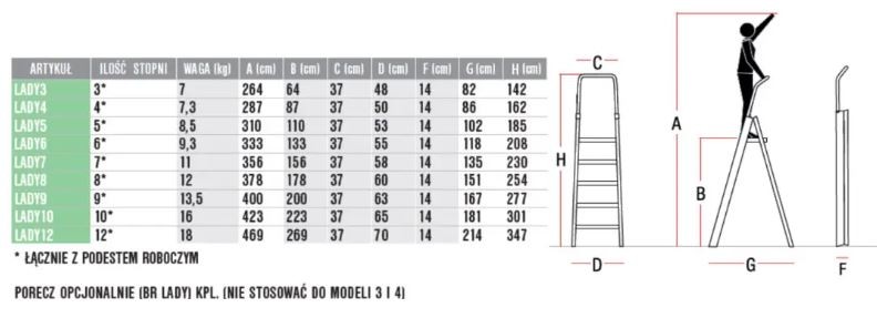 Parametry techniczne drabiny aluminiowej LADY12: