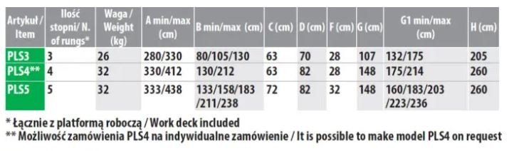 - ilość stopni: 5 łącznie z platformą roboczą