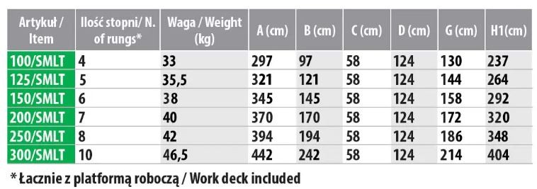 - ilość stopni: 7 łącznie z platformą roboczą