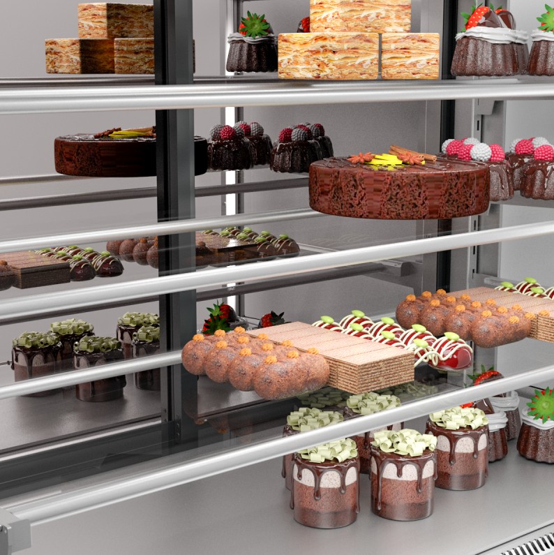 Witryna INNOVA T wyposażona jest w wewnętrzny agregat chłodniczy i system dynamicznego chłodzenia z automatycznym odszranianiem, który zapewnia utrzymanie produktów w optymalnej temperaturze od +2 do +15°C. Dzięki temu ciasta i wypieki pozostają świeże, zachowując swój smak i atrakcyjny wygląd.